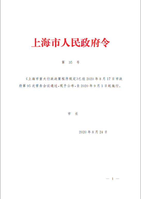 上海市重大行政决策程序规定