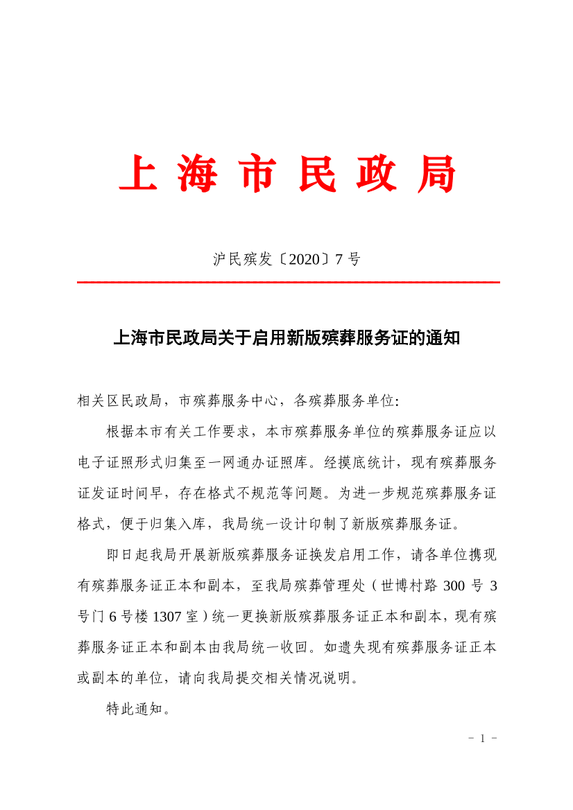 关于启用新版殡葬服务证的通知 ( 2021-01-06 )