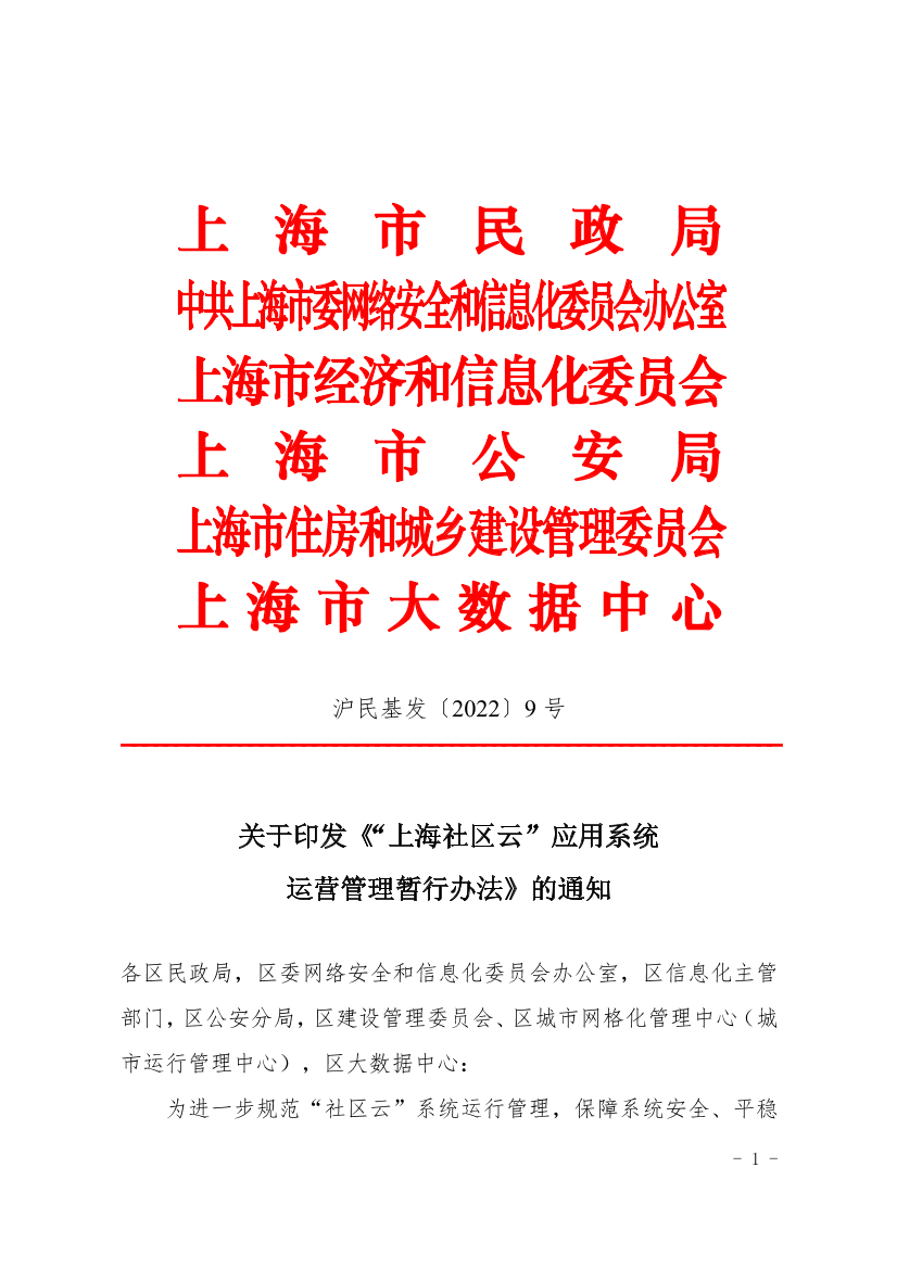 关于印发《“上海社区云”应用系统运营管理暂行办法》的通知 ( 2022-12-14 )