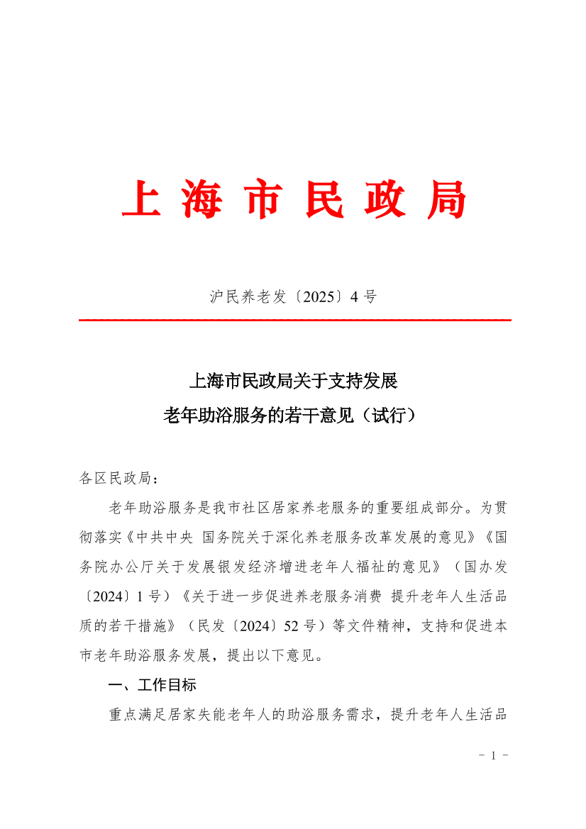 上海市民政局关于支持发展老年助浴服务的若干意见(试行) ( 2025-03-17 )